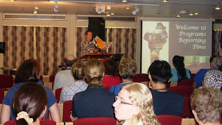 Part of my responsibilities including coordinating and hosting Friday morning’s Programs Reporting Time – the opportunity for representatives from our Programs areas – the Hospital and HealthCare Development. In this photo, I am sharing with the crew the opportunities that are available for them to sign up and join us at various locations.