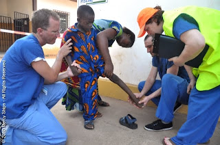 During the day, approximately 300 people came to the screening and about 200 made it through the pre-screening (others may have been referred to the eye or dental clinics). For this year in Togo, we are only focusing on pediatric patients for orthopaedics, those under the age of 15. In addition, this year the orthopaedic team will be conducting training and demonstration of the ponseti casting method, intended to care for children with club feet without the need of surgery. You can read more about it at www.ponseti.info. One of our patients was Romeo who was just five days old and has club feet and so he is an excellent candidate for the ponseti casting. Another mother brought her two baby twin girls – Ann and Annie – one has club feet and they have done her casting and she is being cared for in B ward.